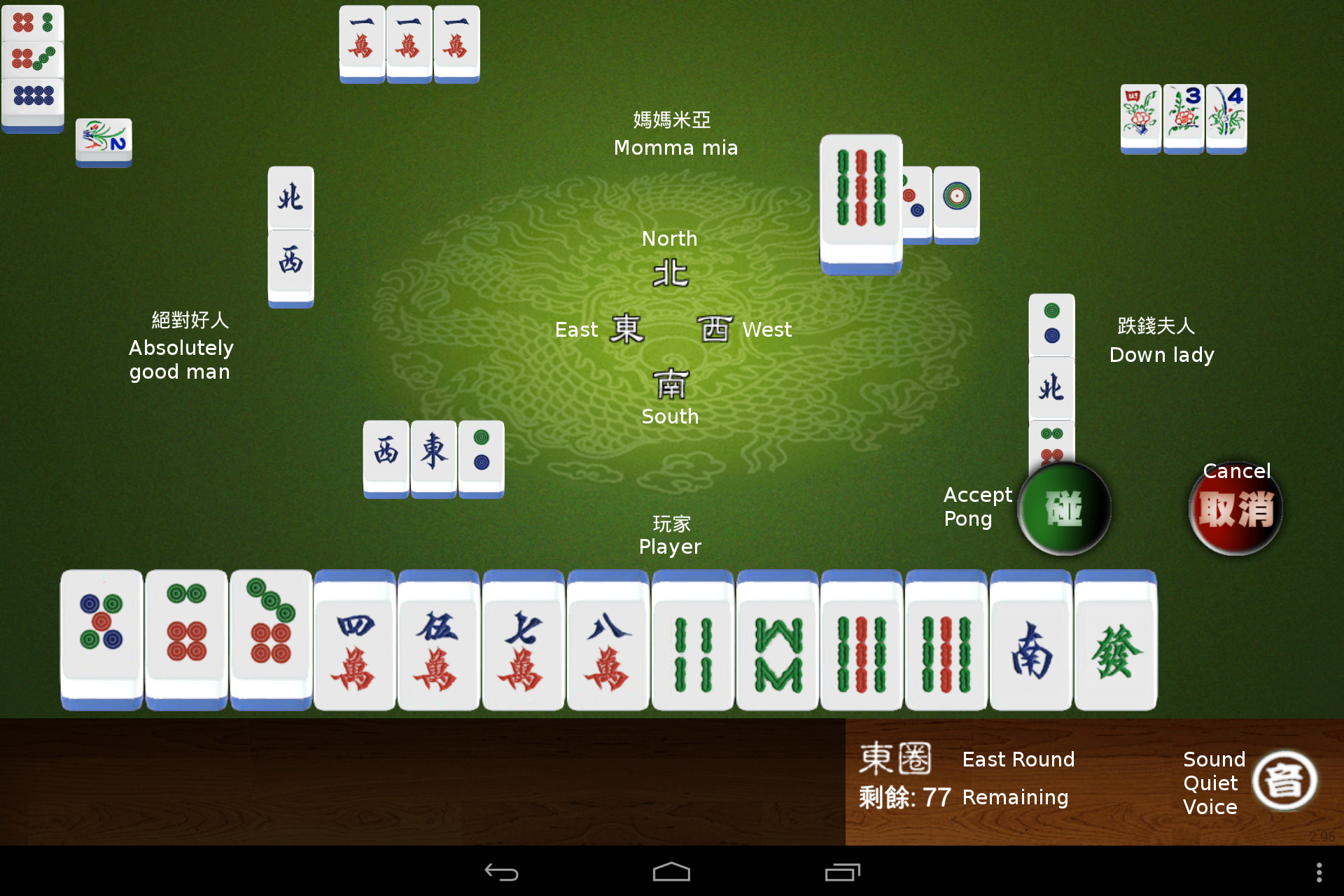 The green button will accept the tile to meld the Pong. The red button will reject it and play will continue immediately.