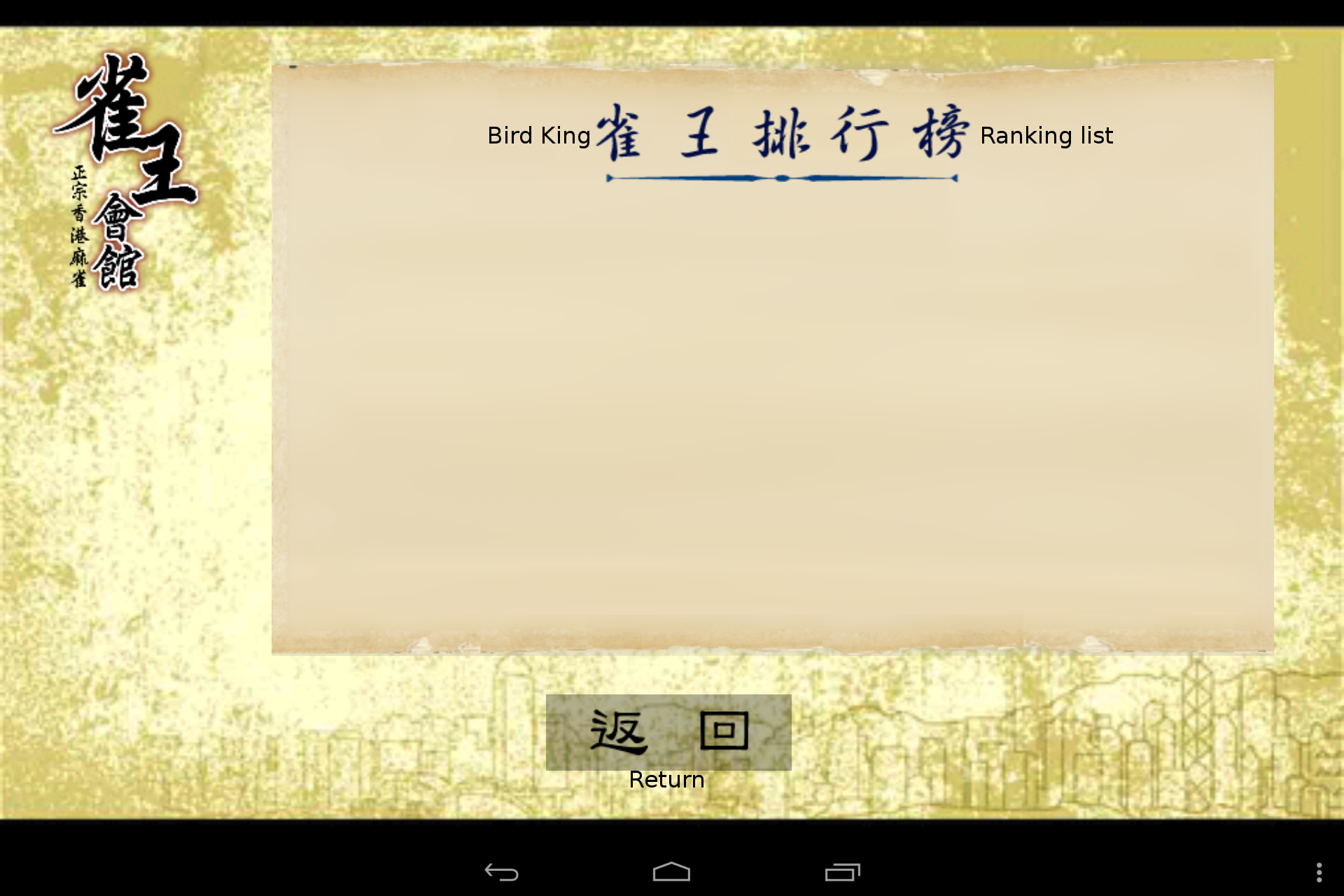 This page shows the ranking list. I assume that it is for registered online players, since mine has never shown anything other than this blank list.